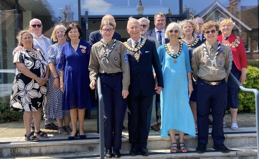 I was also very pleased that two Explorer Scouts, Alexander Davies and Holly Maystone who have agreed to be ‘Mayors Cadets’ this year were able to join in, hotfoot from camping. Together we read a declaration which sets out what our Town Council is all about: