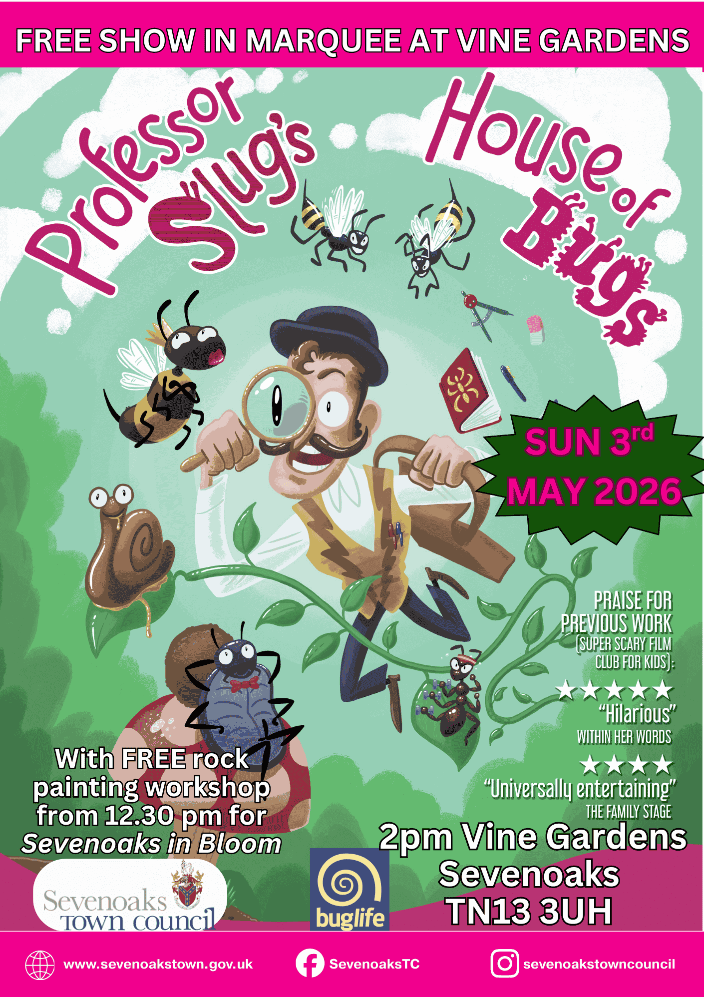 Come and see Professor Slug's House of Bugs theatre show.